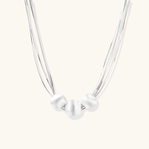 Ver todos los detallesCollar de capas de plata de ley de Astral Signature. Tres cuentas de plata de ley cepillada anclan delicadas cadenas multihebra que se mueven conti...