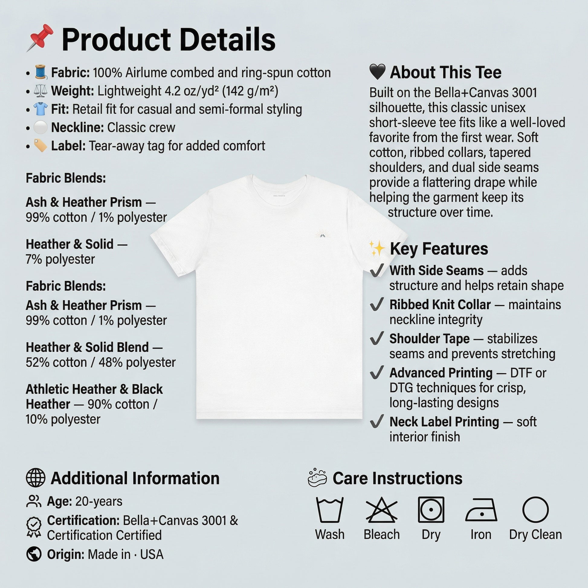 Información del producto : Bella+Canvas 3001, 2 años de garantía en la UE e Irlanda del Norte según la Directiva 1999/44/CE